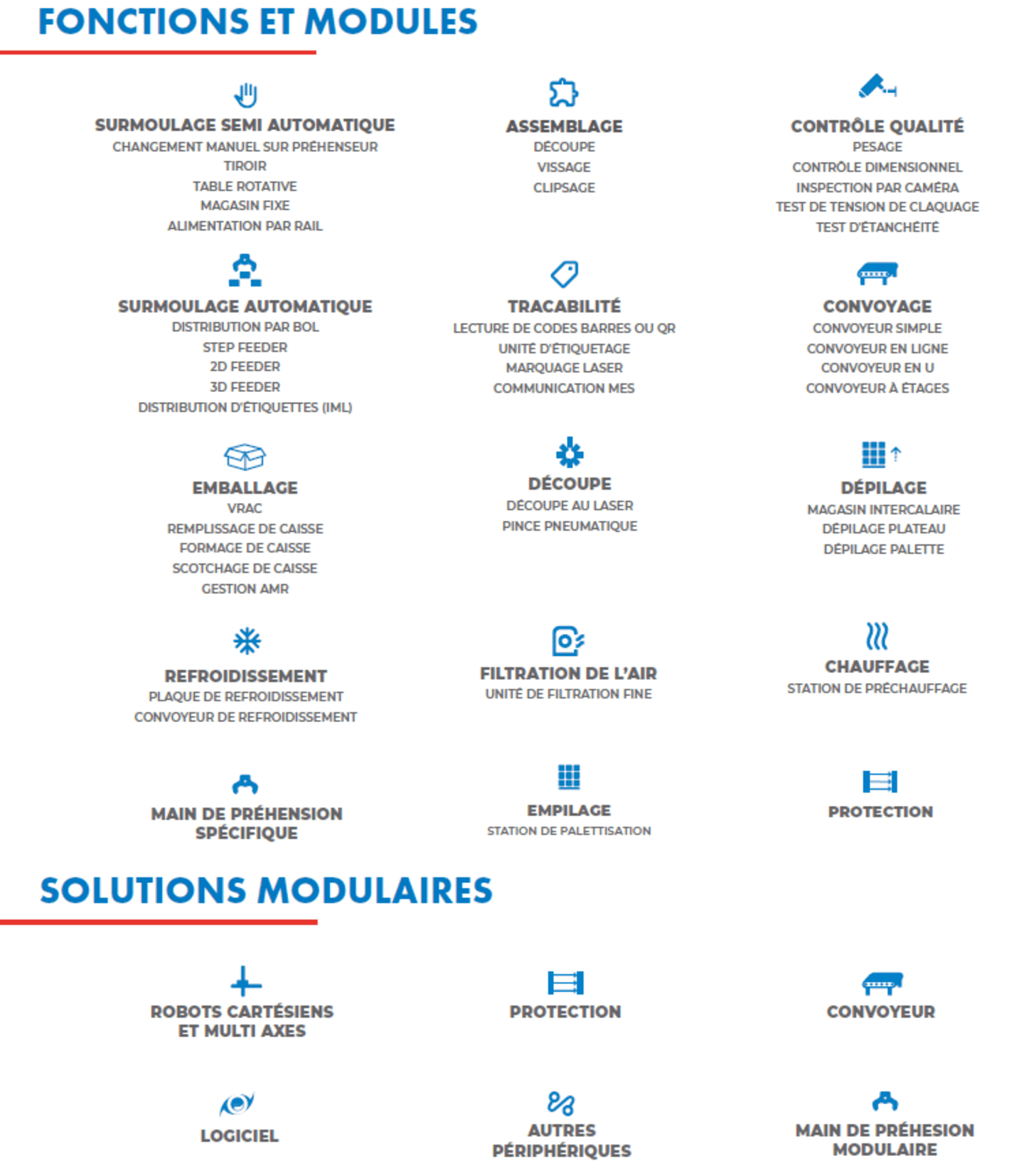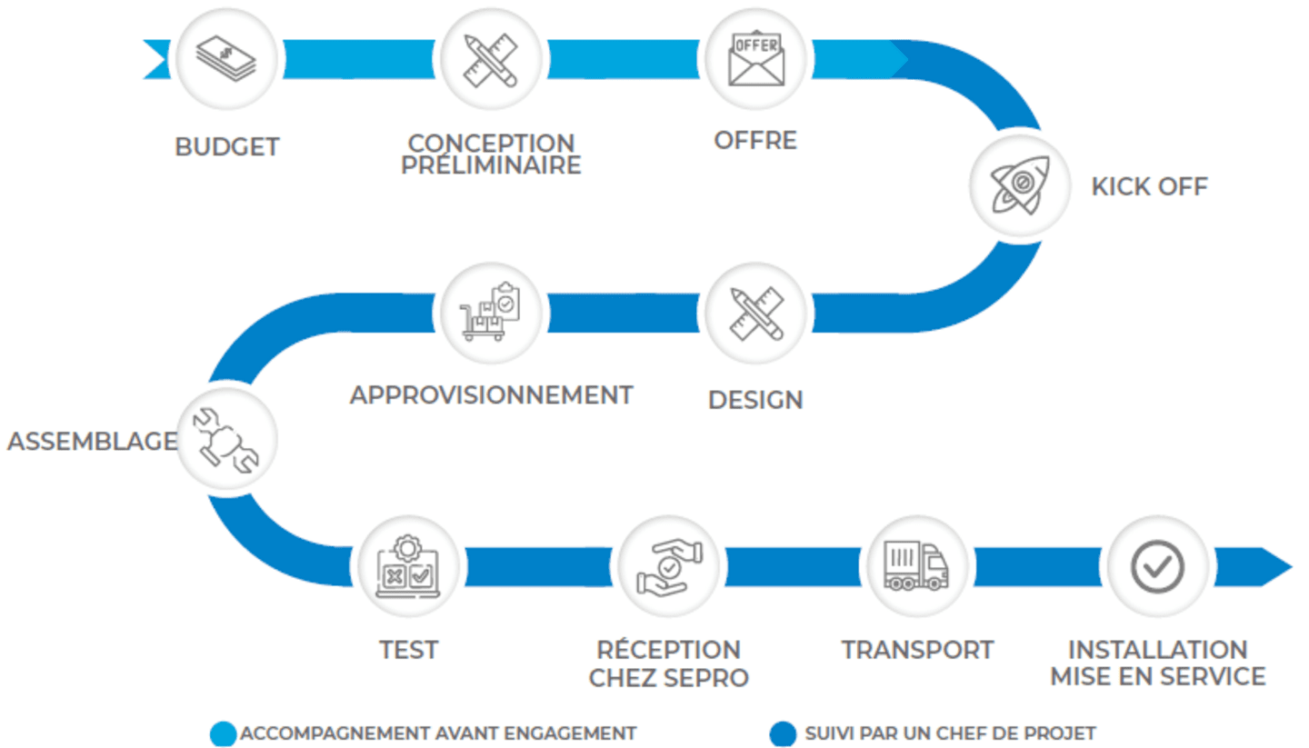 En tant que fabricant de robots, développeur de logiciels et intégrateur de systèmes, Sepro collabore avec un réseau de partenaires technologiques de confiance. Du contrôle IMM à l'intégration 6 axes, en passant par les systèmes de vision et les solutions de tri, tous les composants sont parfaitement intégrés au sein de nos cellules d'automatisation. Chaque solution Sepro est alimentée par notre contrôleur Visual natif et optimisée par un tableau de bord PLC Sepro dédié, ce qui simplifie la supervision et la maintenance. Nos équipes d'ingénieurs experts s'engagent à vous accompagner à chaque étape, de la définition de vos besoins à la conception et à la mise en oeuvre d'une solution qui améliore votre qualité et votre productivité globales.