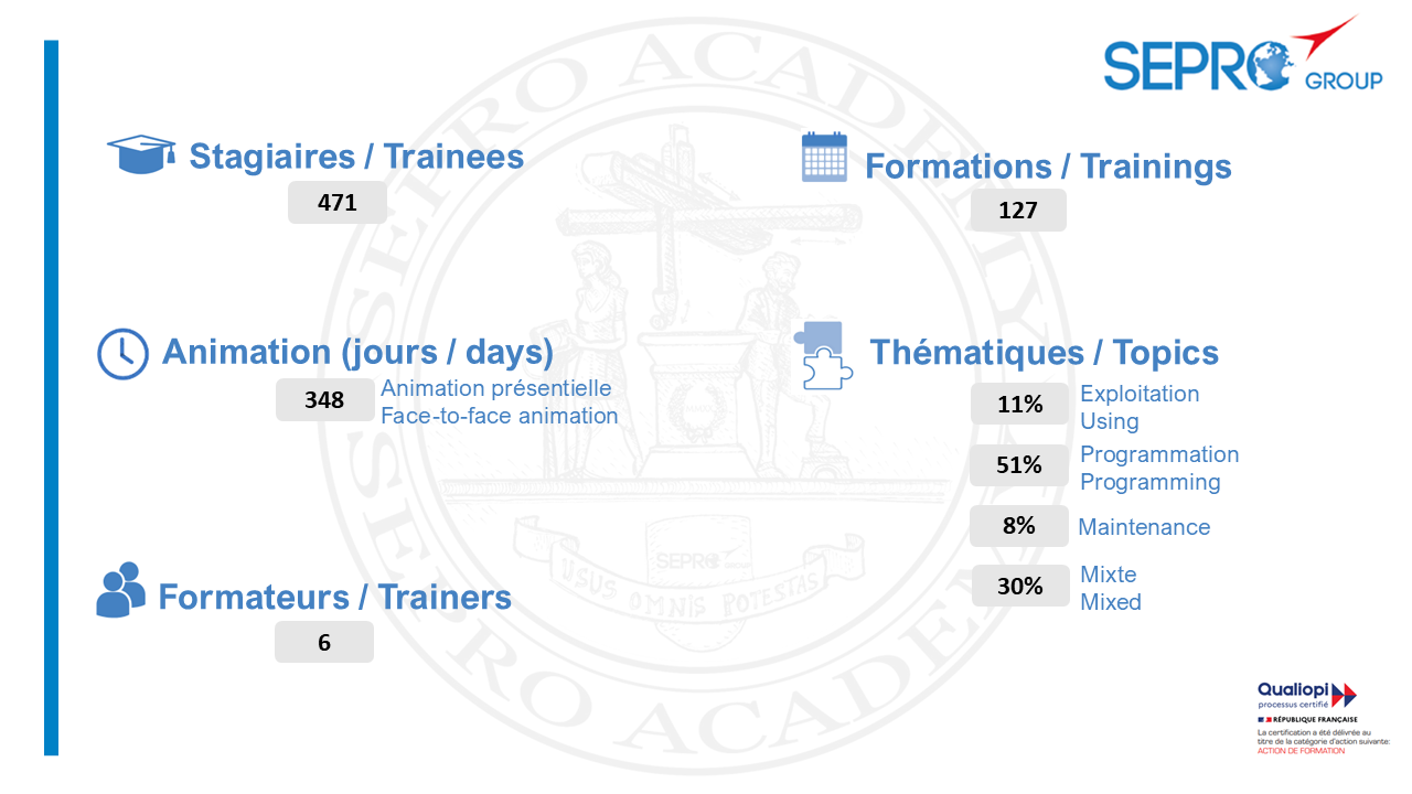 La Sepro Academy propose des stages de formation robotique industrielle standards ou sur-mesure adaptés à vos besoins en France et à l'étranger