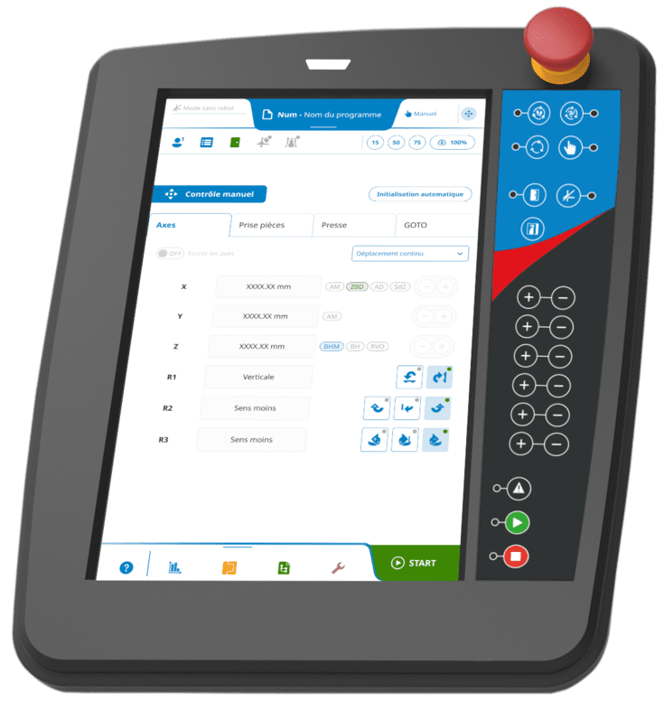 Com o VISUAL 4, a navegação do submenu está sempre acessível, permitindo que os usuários alternem as funções de forma mais ápida e intuitiva. Isso melhora a eficiência do fluxo de trabalho, reduzindo etapas desnecessárias e alterações de tela. Todos os modos do robô estão disponíveis em todas as páginas de navegação, simplificando as operações e minimizando o tempo de inatividade. A interface foi projetada para manter os controles essenciais ao alcance o tempo todo. O VISUAL 4 traz velocidade, simplicidade e controle para cada interação do usuário.